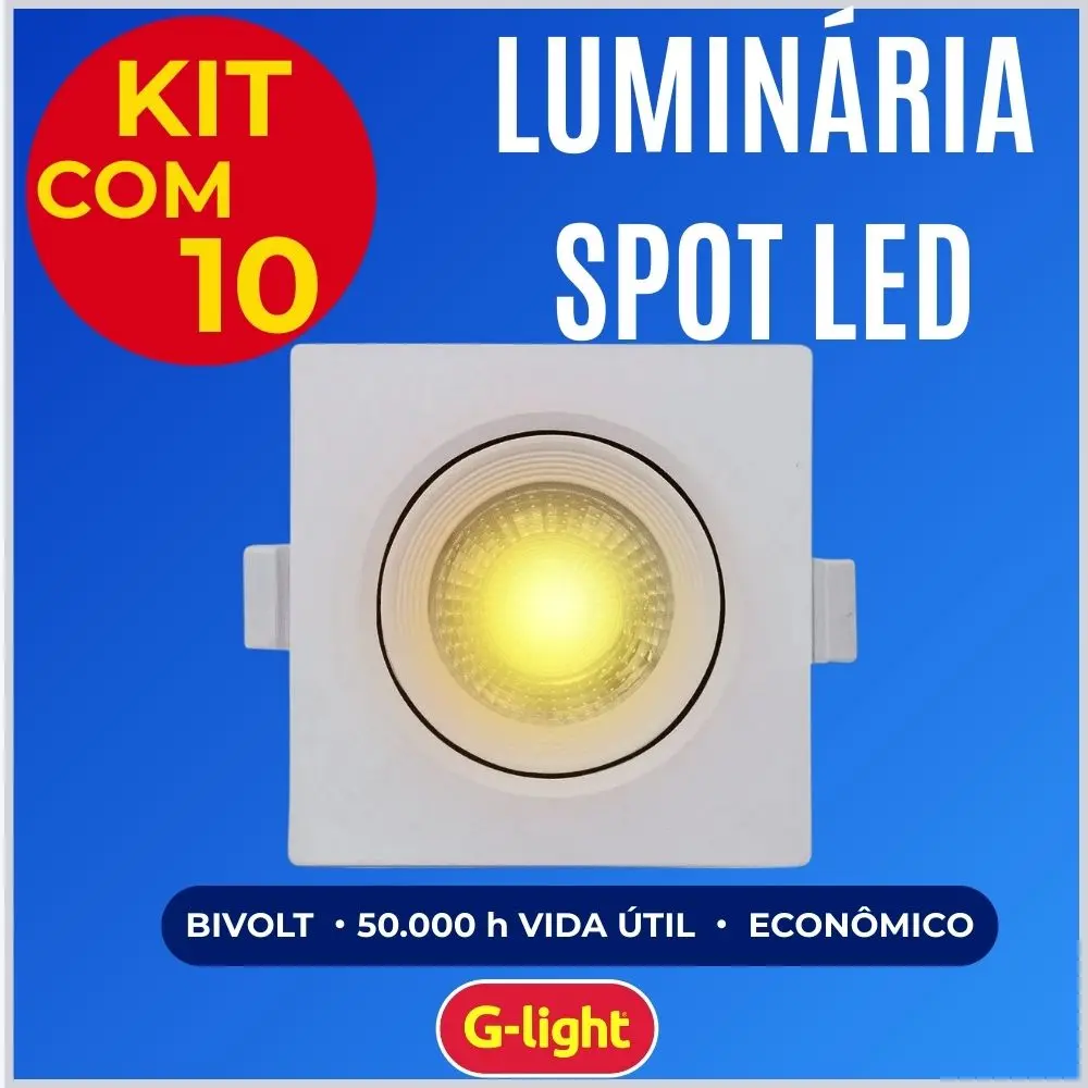 KIT 10 LUMINARIA LED(SPOT) 4W 3000K E 6500K QUADRADO EMBUTIDO G-LIGHT(PRIMEIRA LINHA) – 6500K