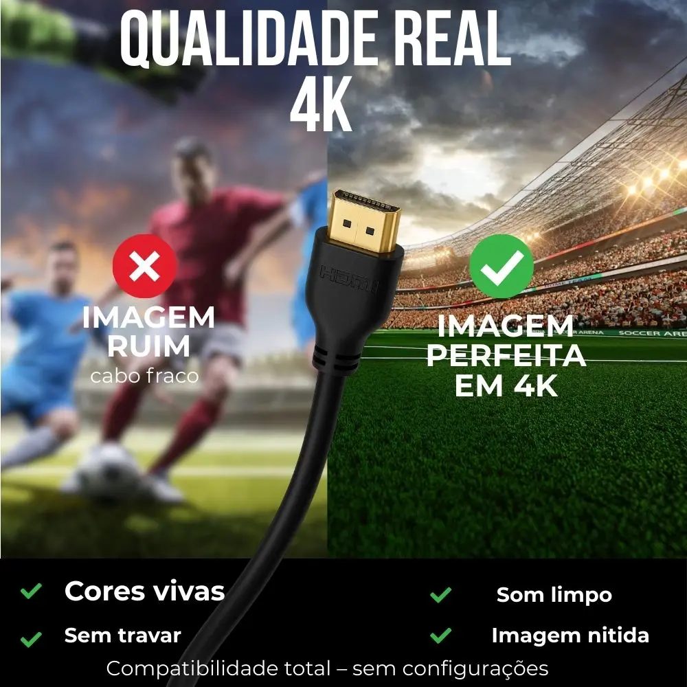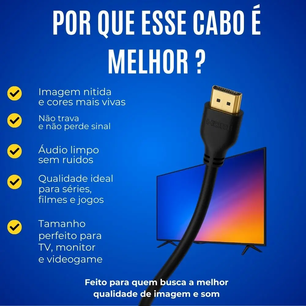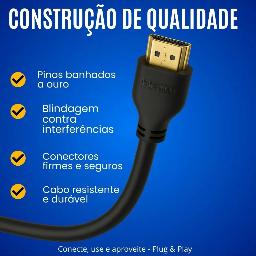 Tenha imagem perfeita e som limpo com um cabo de alta qualidade, ideal para Smart TVs, monitores, notebooks, PC Gamer, projetores, Xbox, PS4 e PS5.