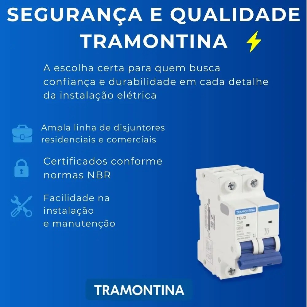 Garanta proteção, durabilidade e segurança com os Disjuntores Tramontina TDJ — desenvolvidos para oferecer desempenho superior em instalações residenciais e comerciais.