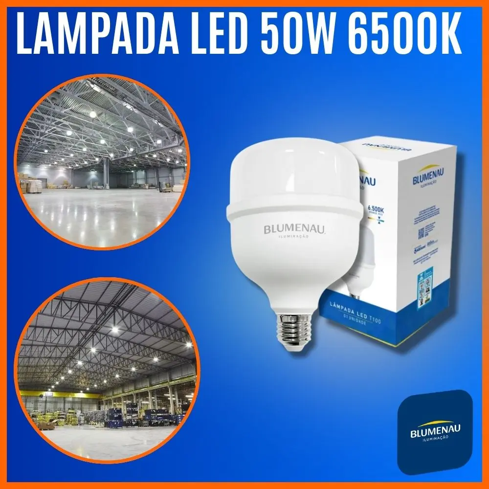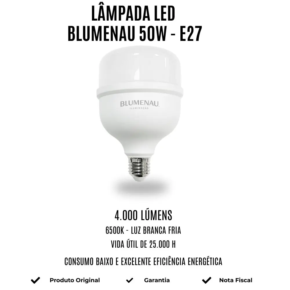 Lâmpada LED 50W 6500K Blumenau – E27 Bivolt | Luz Branca Fria, Alta Eficiência